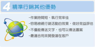 ※ 精準行銷簡訊屬特殊條件,篩選條件名單請於3個工作天前提出申請(不包含例假日)